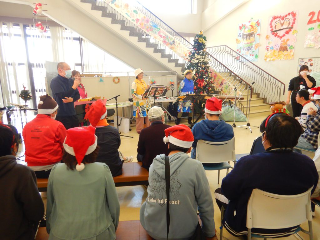待ちに待ったクリスマス会が、12月5日行われました!朝からセンターふじしろはクリスマス会でドキドキわくわくです。施設長のご挨拶から始まります。