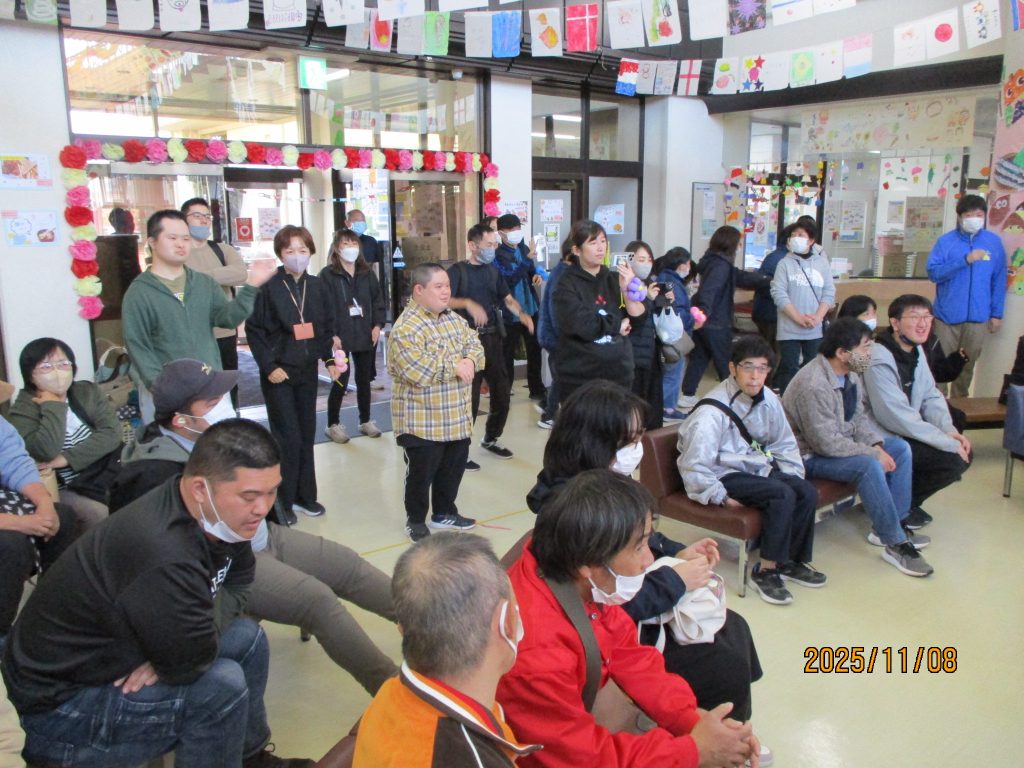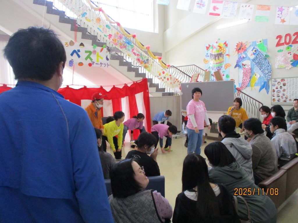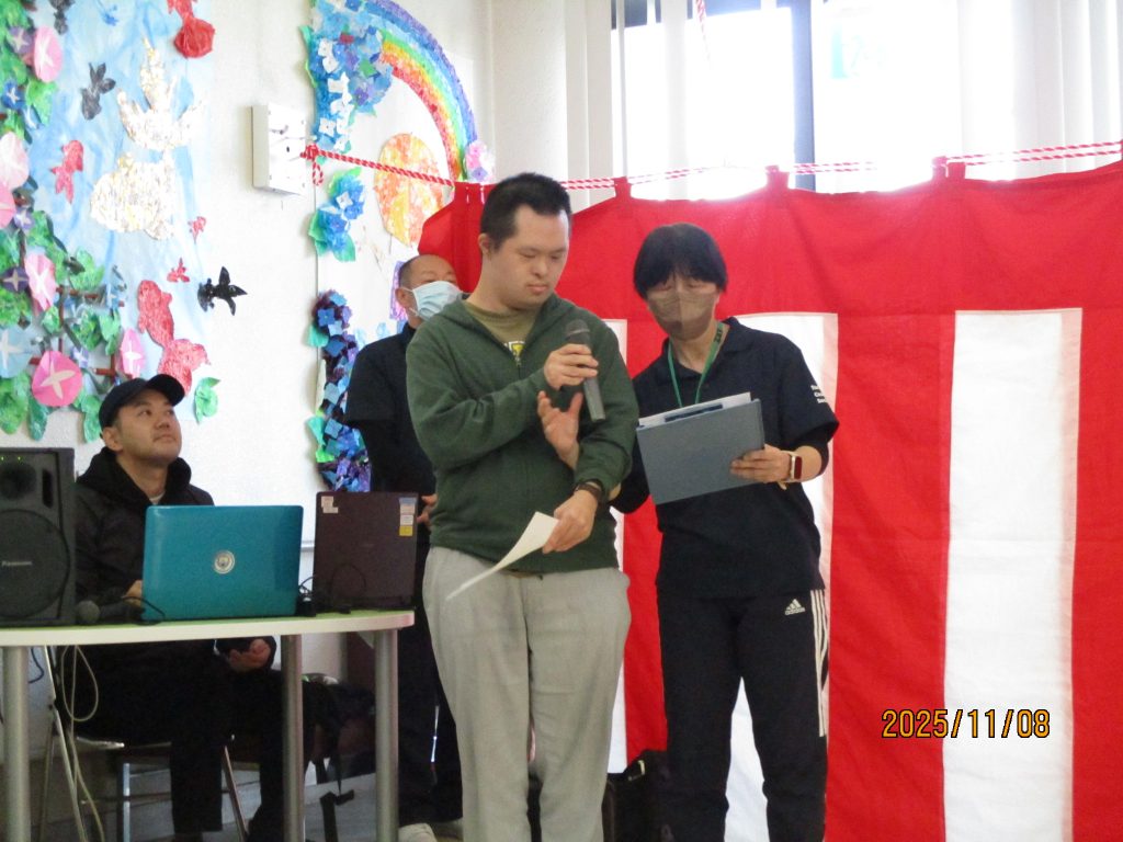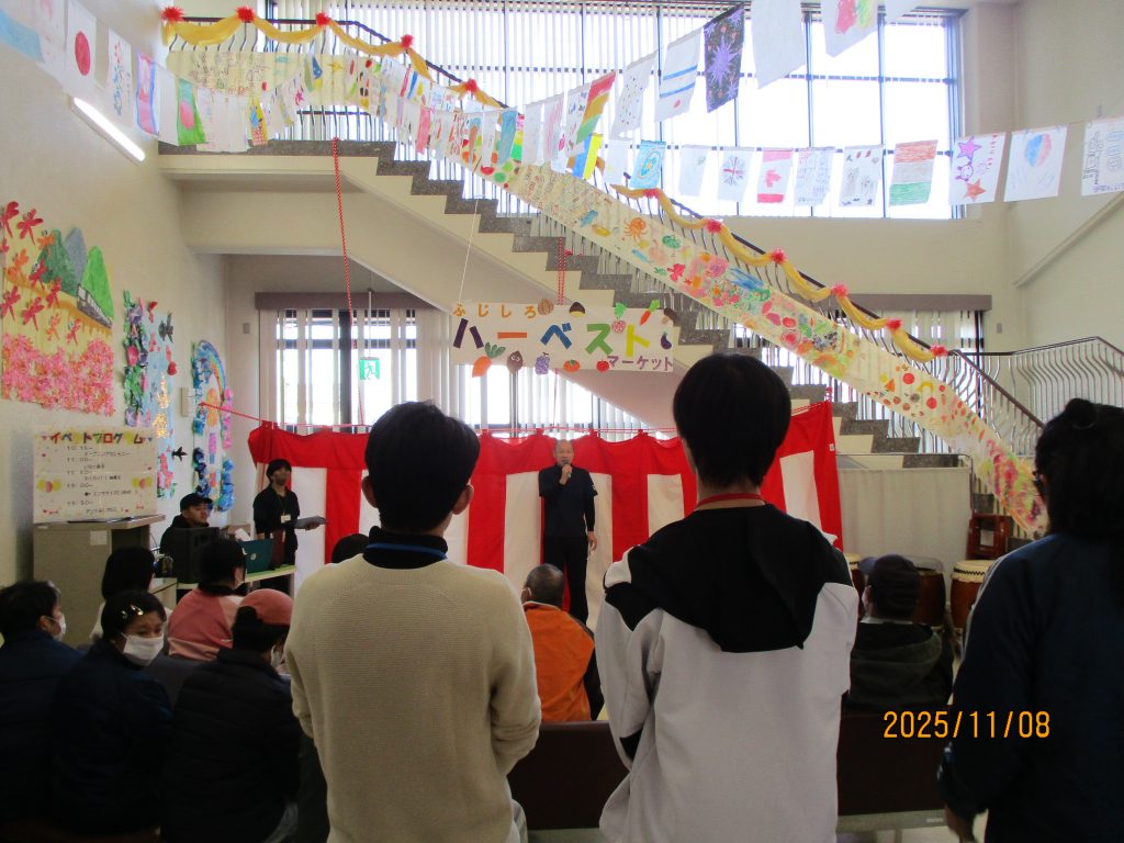 11月8日土曜日、晴天の中ハーベストマーケットが開催されました。開会式は施設長の挨拶、開会の言葉、大きなクラッカーでスタートです。