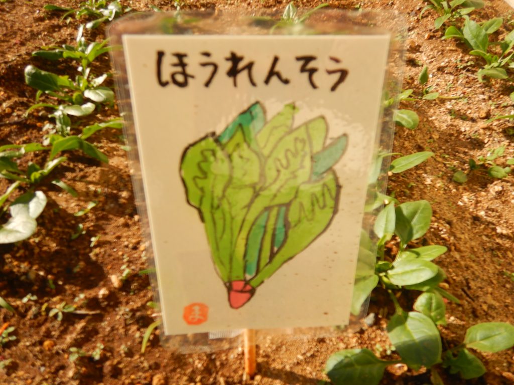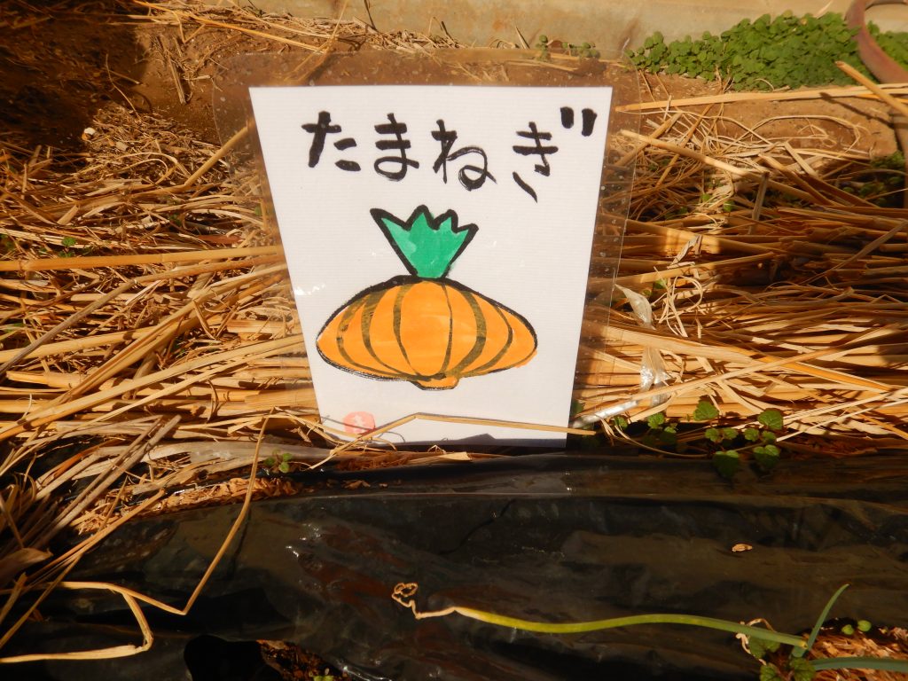 玉ねぎです!!絵のような立派な玉ねぎが出来ますよ!!一班さんの大切に育てている野菜たち。朝の太陽を浴びて輝いていました。収穫が楽しみです。野菜のプレートは一枚一枚手書きで手作りです。とても上手で美味しそうに描かれています。ぜひ花壇をのぞいて見てくださいね。次回は野菜たちをお世話している様子をお伝えしたいと思います。
