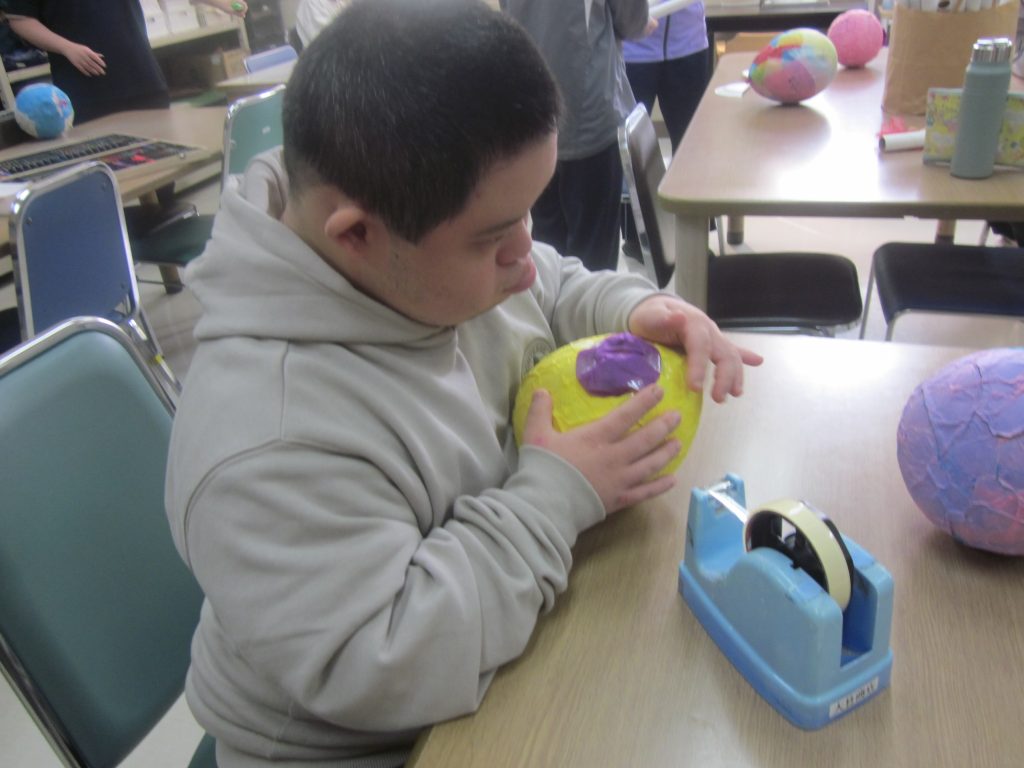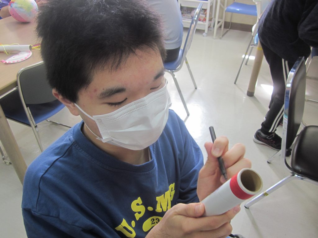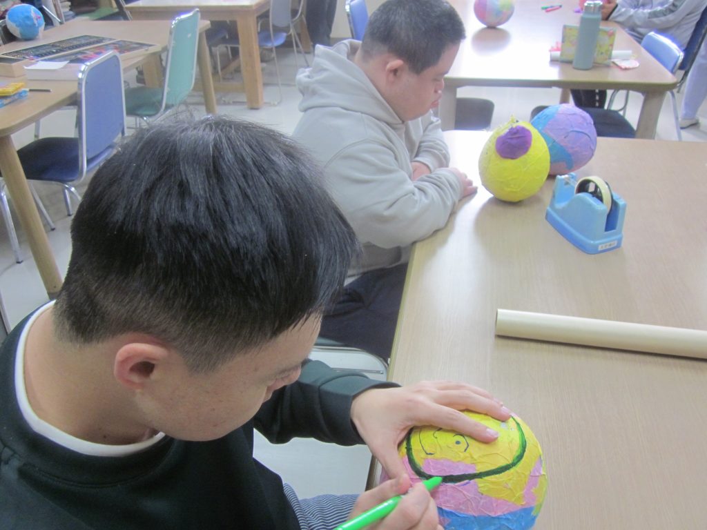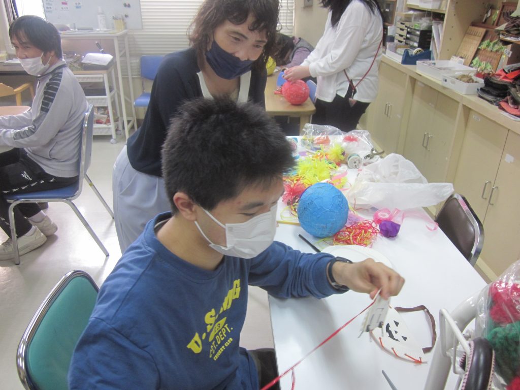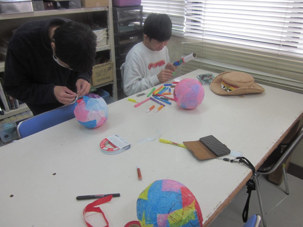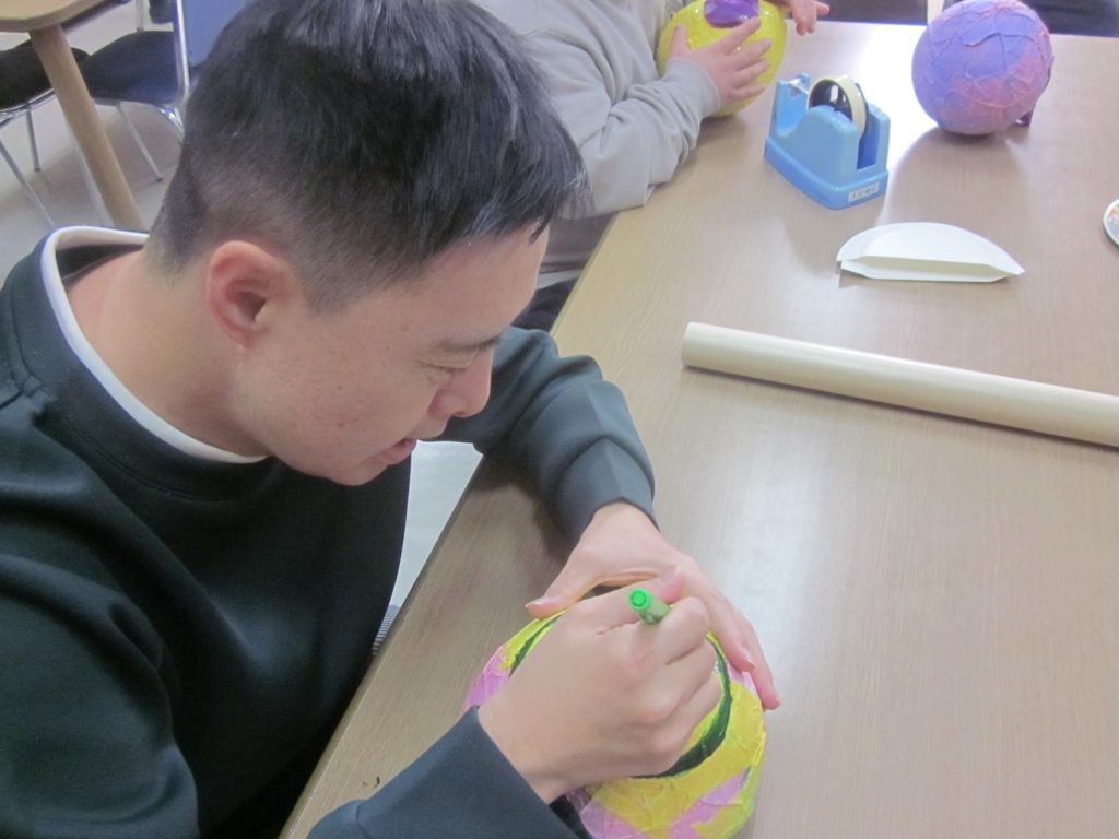 創作クラブは、ハロウィンパーティーをしよう!!です。前回制作した風船が乾きみんなできれいにデザインしながら絵を描きました。