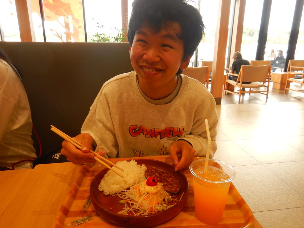 3班さんは待ちに待った施設外活動!明治なるほどファクトリー守谷さんへ工場見学に出掛けました。まずは守谷サービスエリアで昼食です。