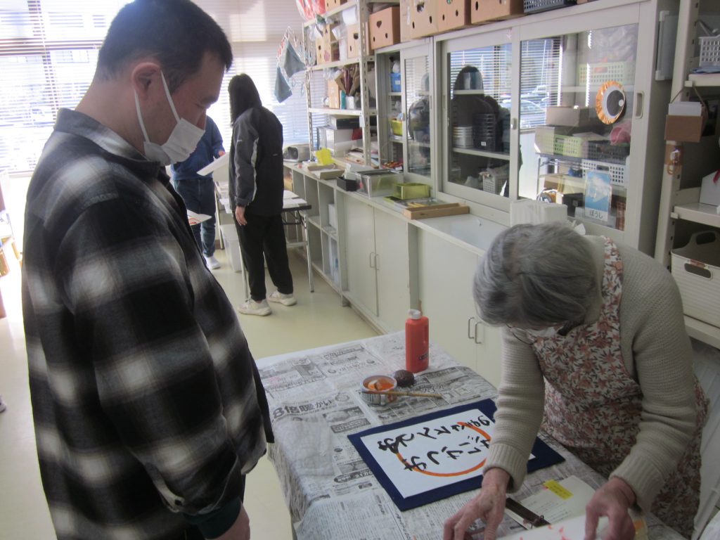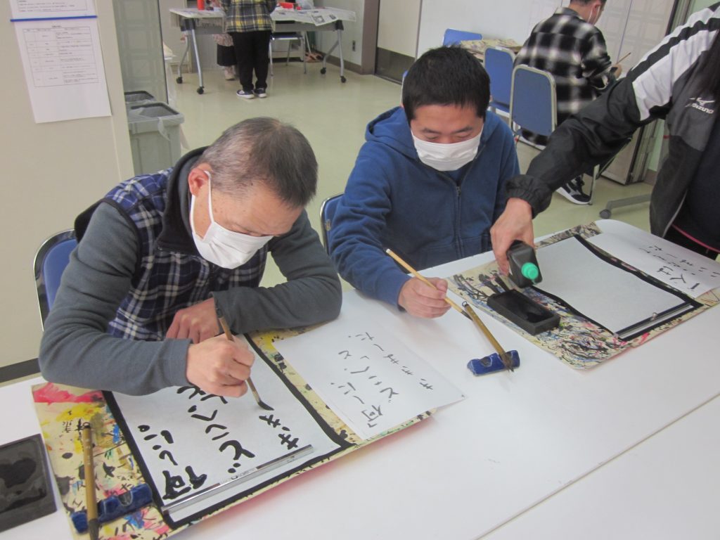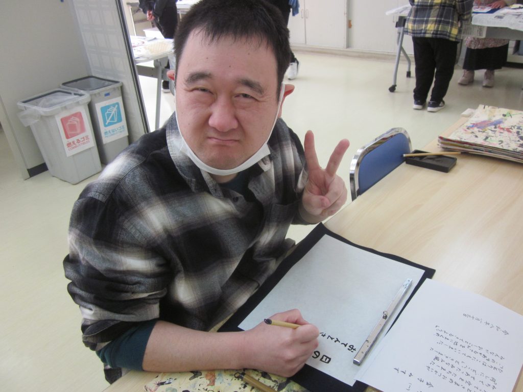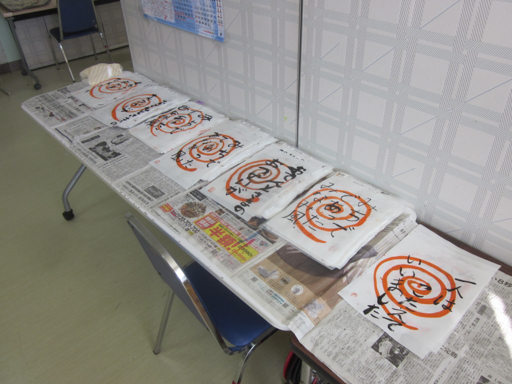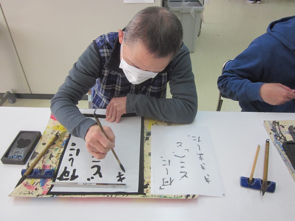 今年初めての美術クラブは書道です。皆さん一生懸命取り組みました。