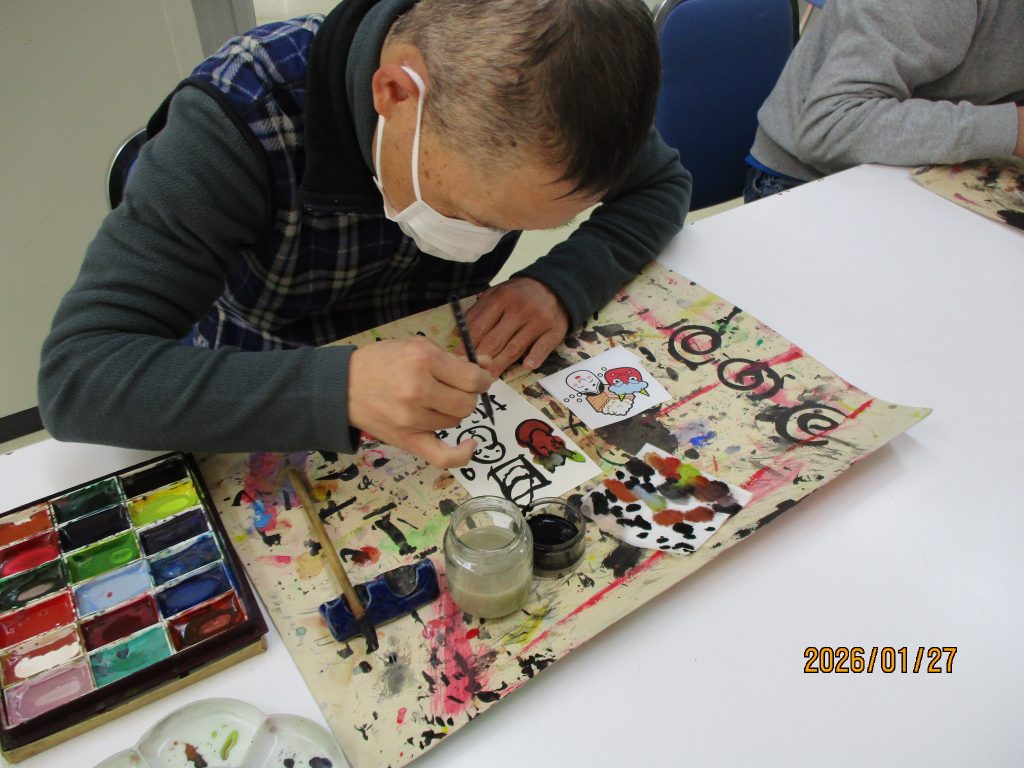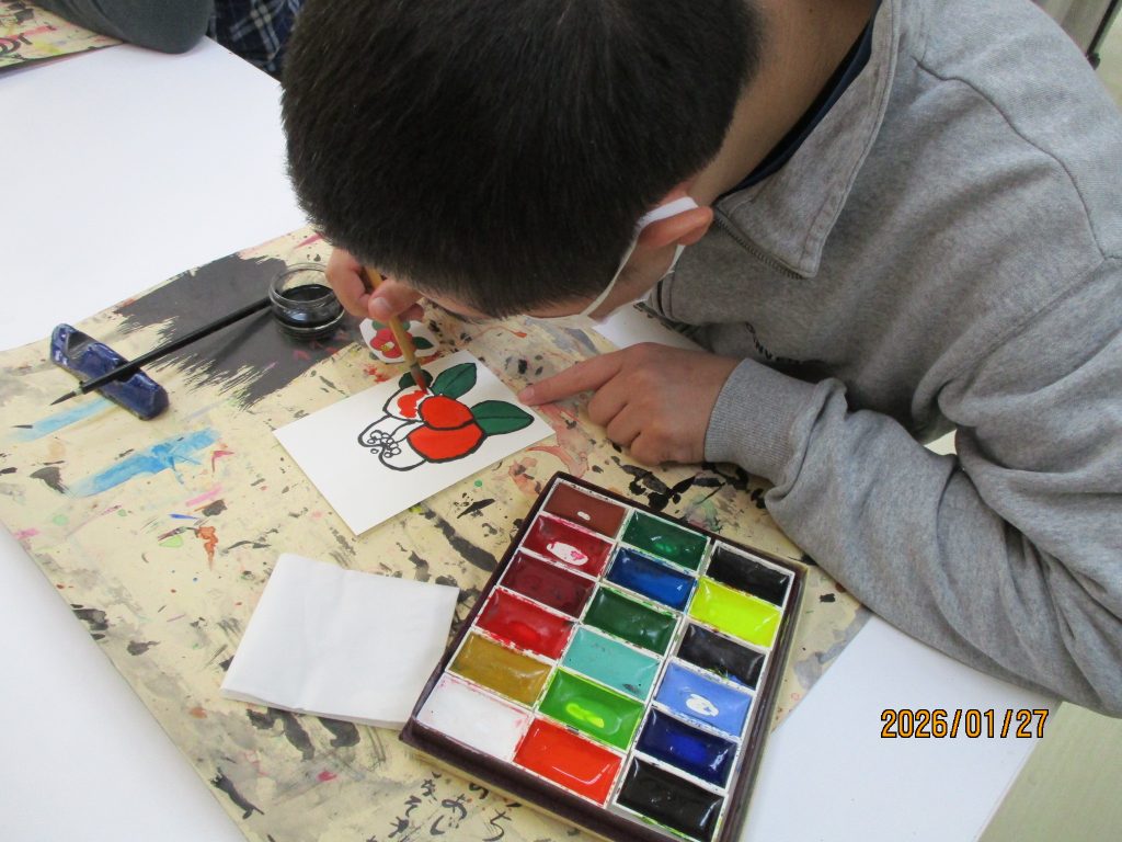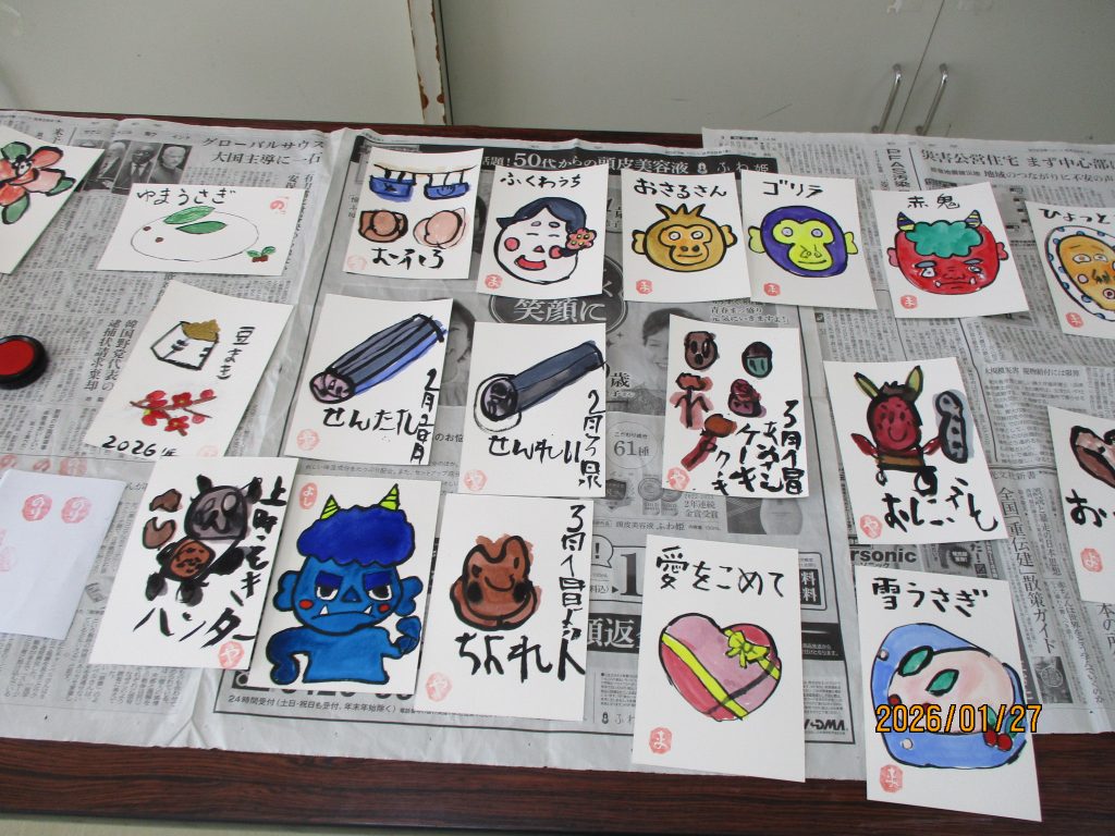 美術クラブは絵葉書です。2月といえば節分!!とっても素敵な絵葉書ができました。