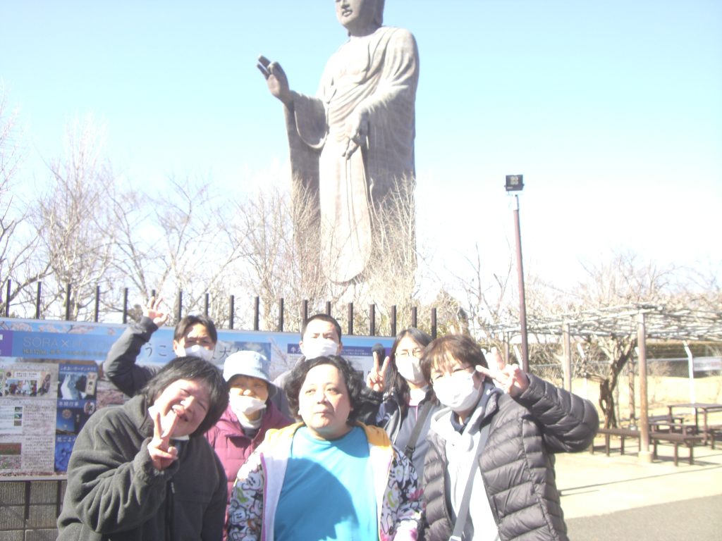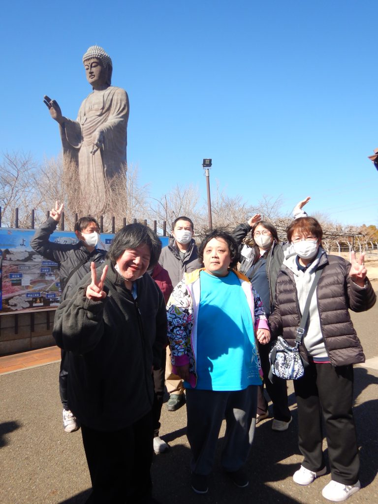 お昼の後は牛久大仏を見学しました。楽しそうな写真ですね!