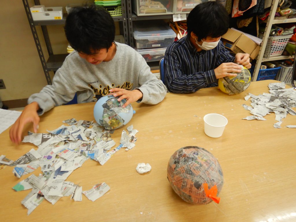 創作クラブは今月はハロウィンパーティーをしよう!です。ピニャータを作りました。