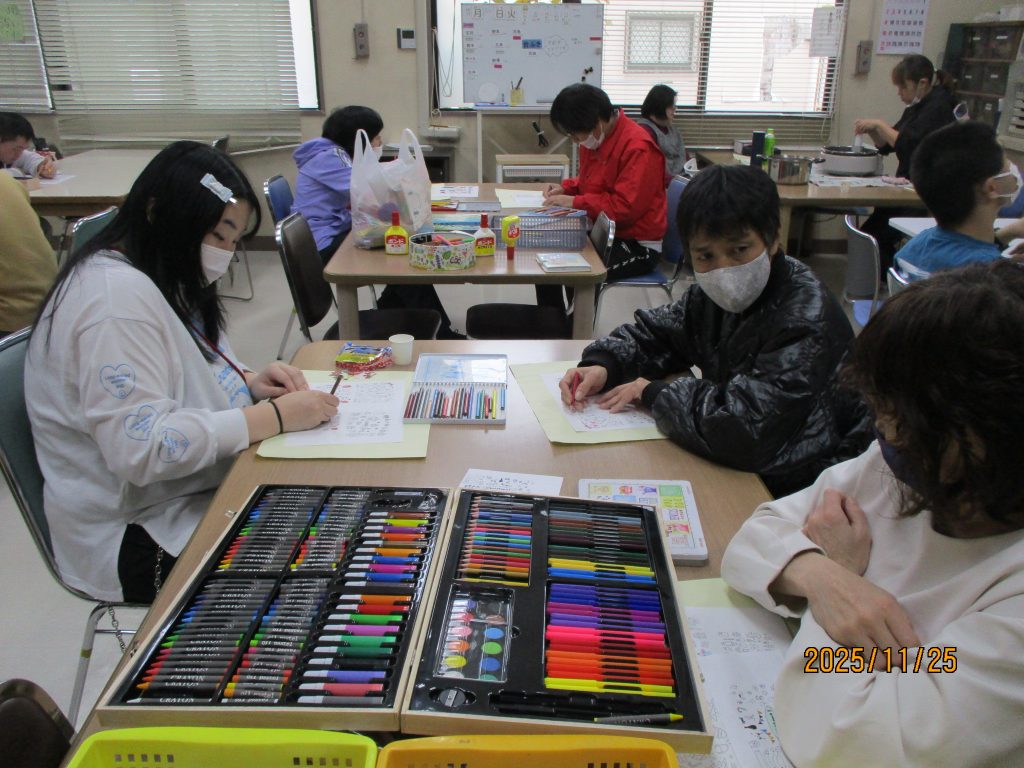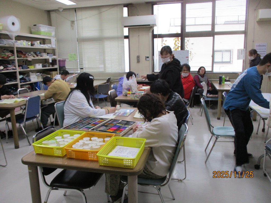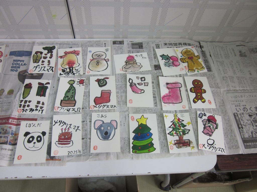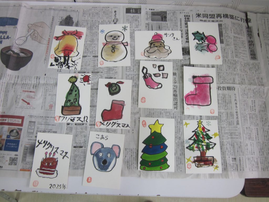 美術クラブは絵葉書です!12月といえばクリスマス!!たくさんのクリスマスにちなんだ絵葉書をつくりました。