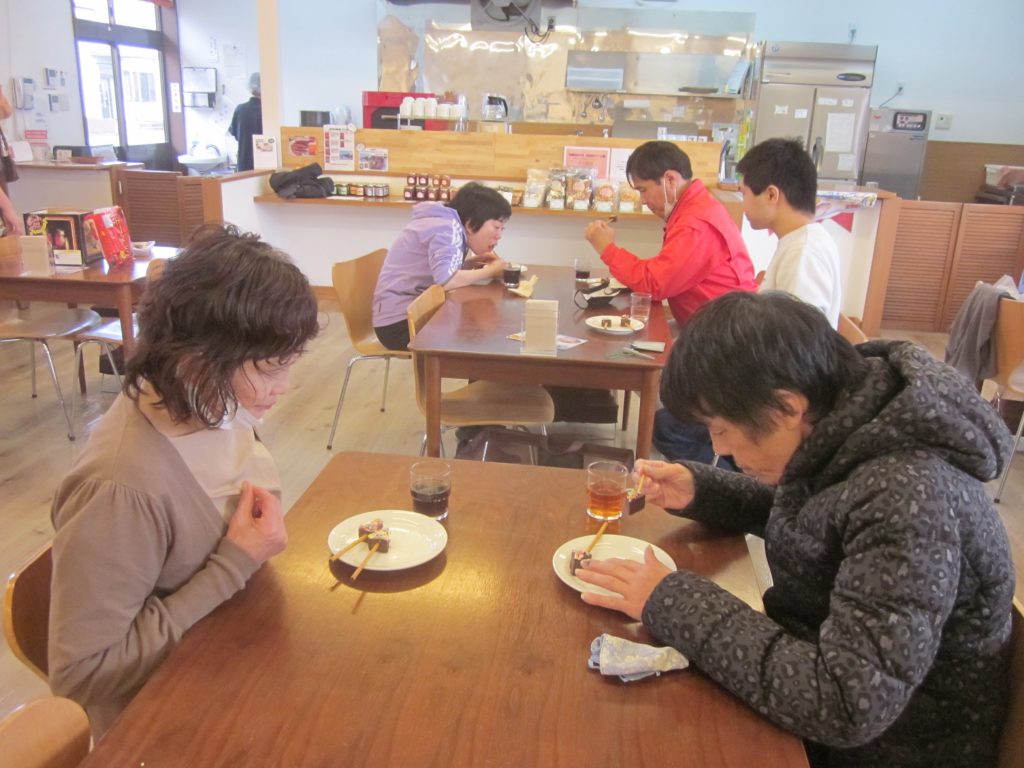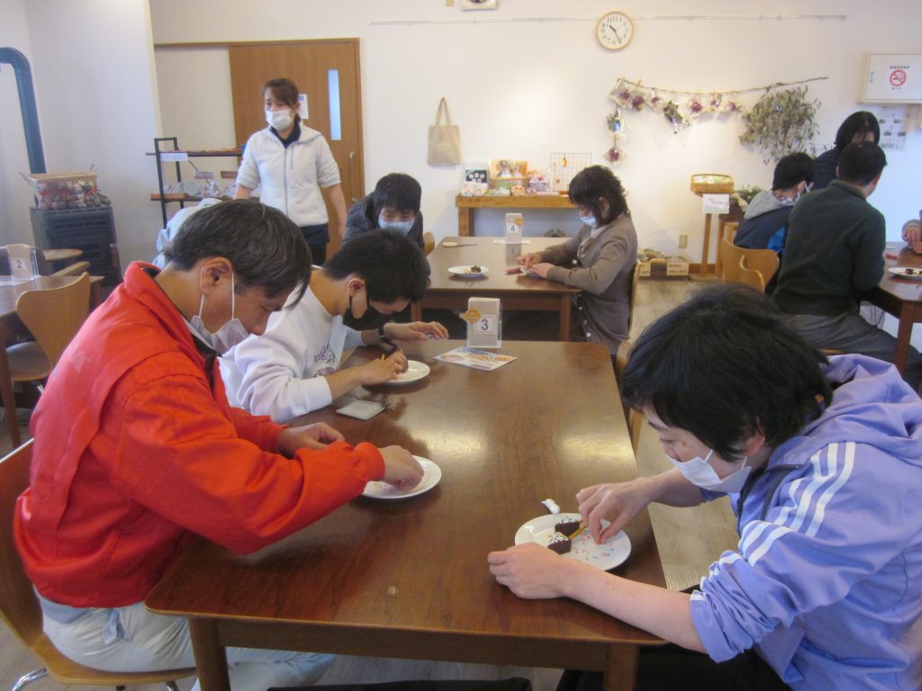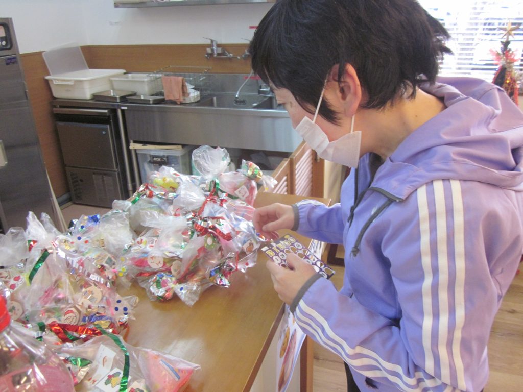 手作りプチケーキを食べた後は、ビンゴ大会!景品はお菓子でした。