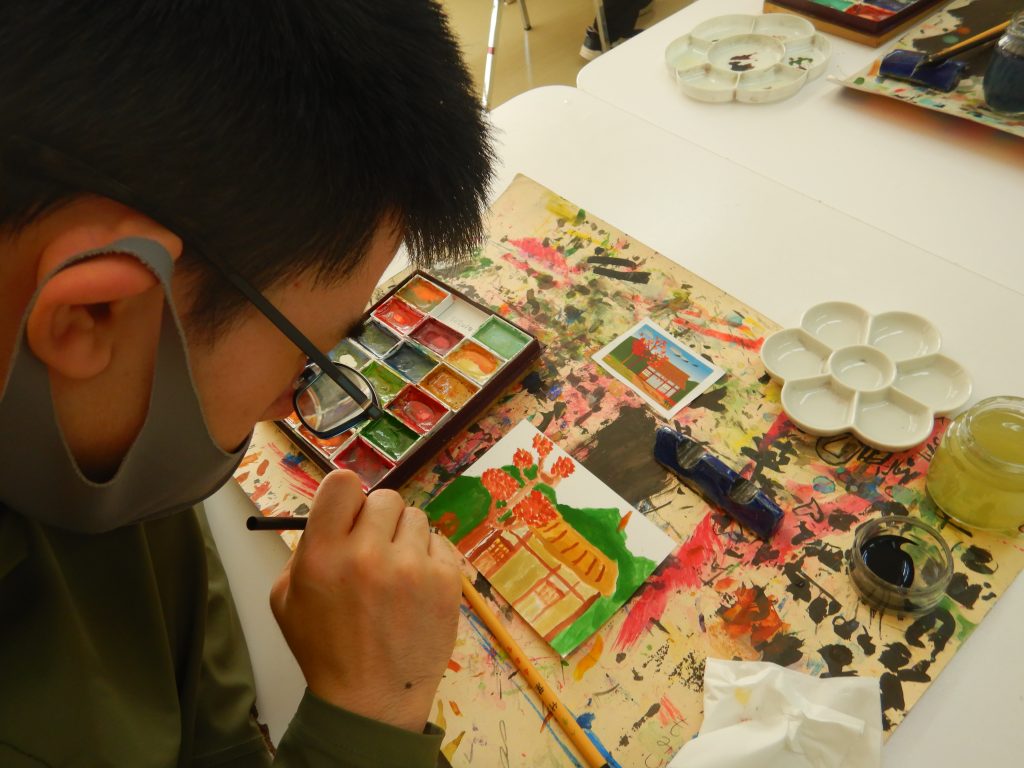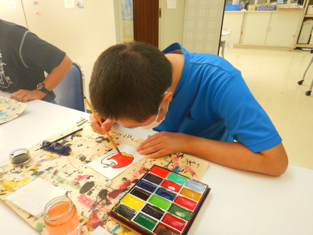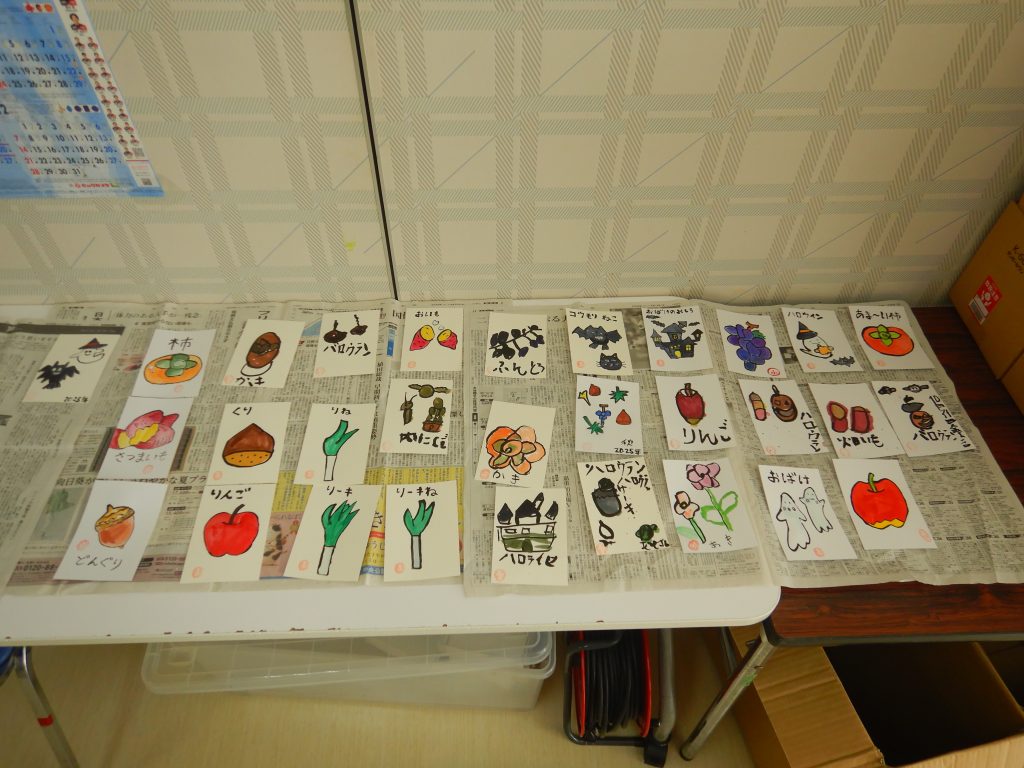 美術クラブは絵手紙です!!秋にちなんだ食べ物、10月といえばハロウィンですね!こわい~お化けもいますよ。